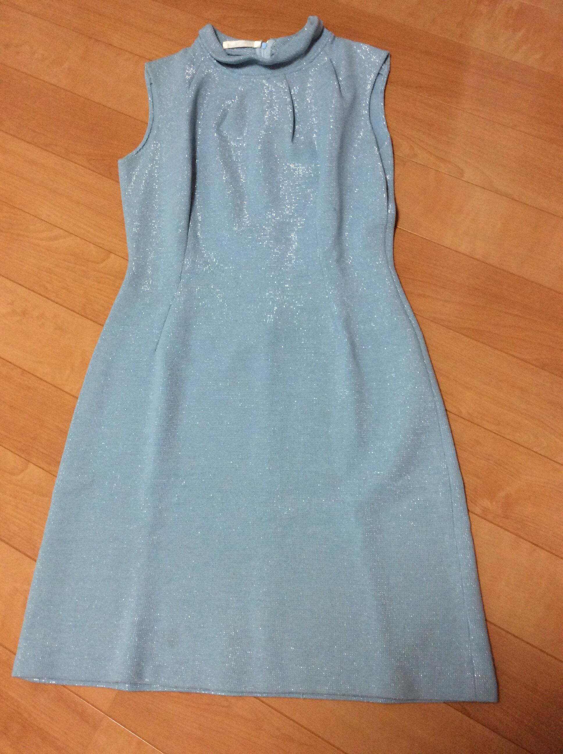 ヨーロッパビンテージワンピース/ペールブルーシルバーラメ入
