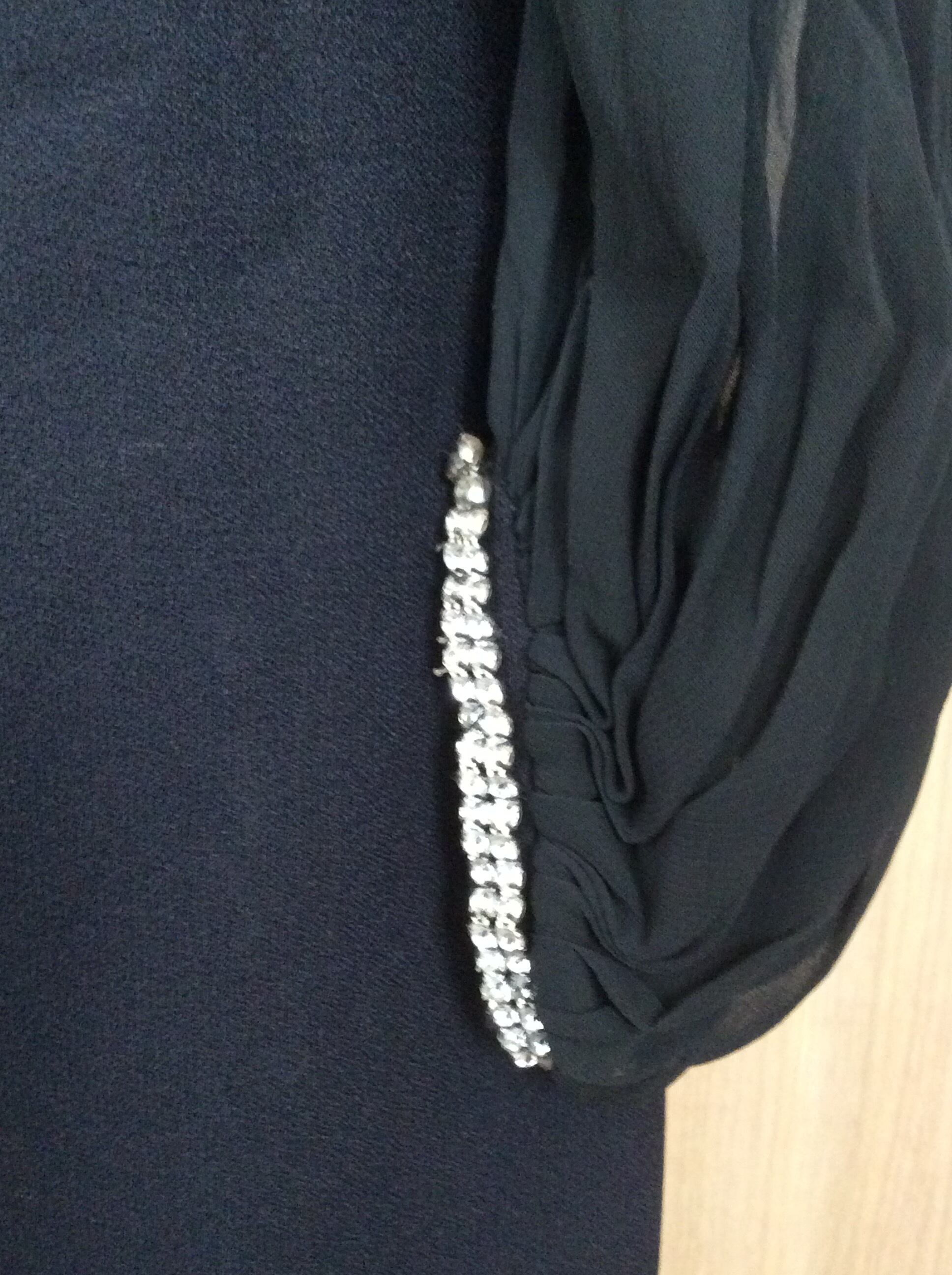 パリでで購入した、上品なシフォン生地と首元のビジュー装飾が美しいビンテージブラックワンピース。